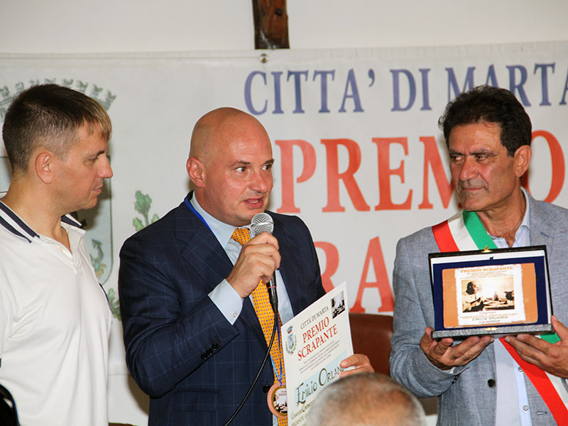 Prima degli interventi del Sindaco Lacchini –che ha anche salutato la presenza del sindaco di San Lorenzo Nuovo Massimo Bambini-, e dell’ideatore e Presidente del Premio Scrapante, Giacomo Carioti, l’inizio della cerimonia è stato affidato alle note della Banda di Marta, che per oltre un quarto d’ora ha effettuato un applauditissimo concerto.
