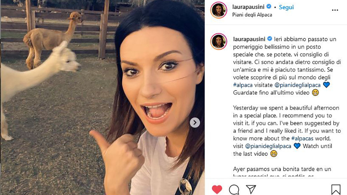 “Ieri abbiamo passato un pomeriggio bellissimo in un posto speciale che, se potete, vi consiglio di visitare. Ci sono andata dietro consiglio di un'amica e mi è piaciuto tantissimo. Se volete scoprire di più sul mondo degli #alpaca visitate @pianideglialpaca ? Guardate fino all'ultimo video ?”, ha scritto nella didascalia dei post.
