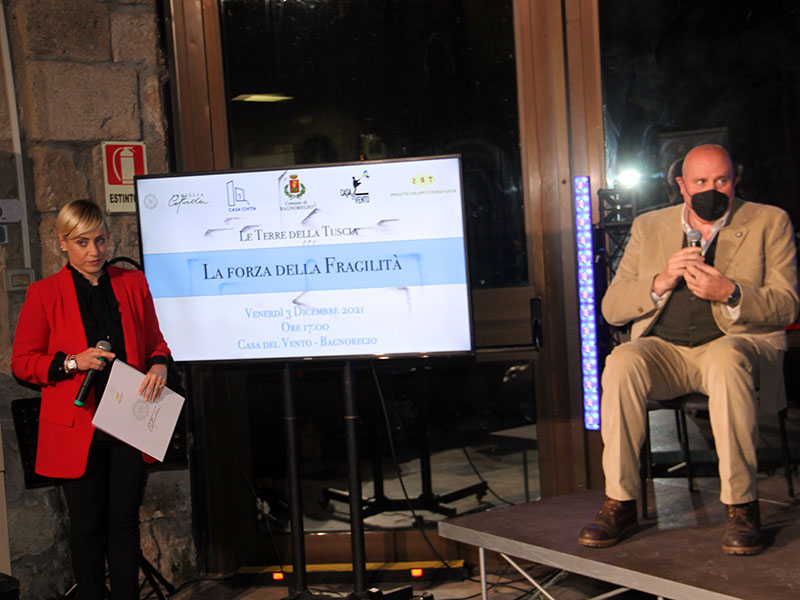 Saluto dal padrone di Casa, il sindaco Luca Profili, che dopo i ringraziamenti ai presenti ha aggiunto: "Questo è il luogo giusto per parlare di fragilità, oggi nella giornata delle persone con disabilità, e viene spontaneo parlare di quanto fatto anche dalla Croce Rossa, che ha permesso l'accesso a Civita a chi non poteva accedere dal ponte", mentre l'onorevole Rotelli ha condiviso le parole del giornalista: "Ha ragione Angelo quando parla delle potenzialità di questa terra, con radici profonde e un futuro da vivere, pur con le fragilità di oggi".