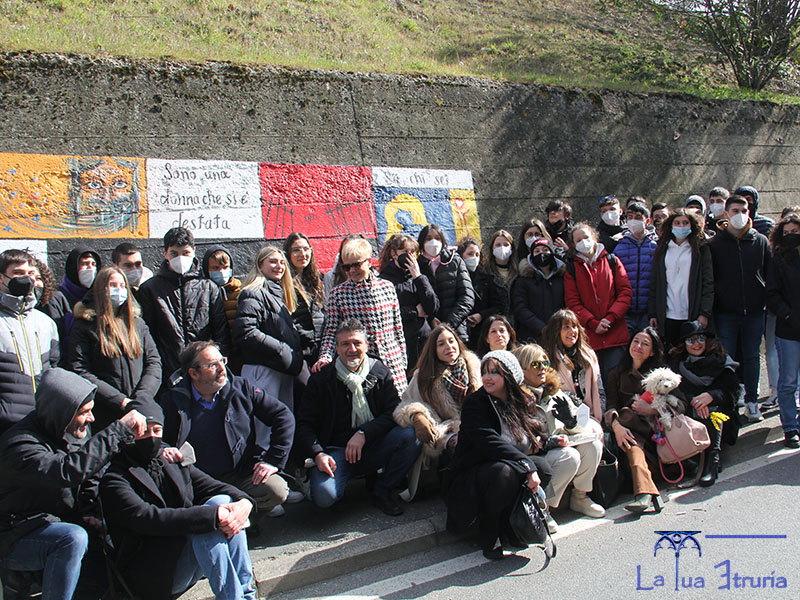 Un gesto simbolico seguito da foto ricordo con gli studenti, gli artisti coinvolti e i protagonisti di questa particolare giornata dedicata alla donna.