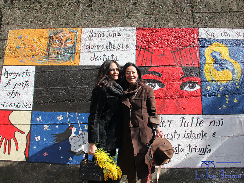 RONCIGLIONE - La cittadina cimina ha accolto stamani Maria Grazia Cucinotta per l'inaugurazione del murales "Una nuova umanità", opera voluta da Vitesenzapaura Onlus insieme alla Libreria Aura e all'assessorato comunale alle politiche culturali.