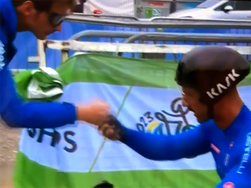 La gara (foto prese online) è stata trasmessa in diretta sui canali a pagamento (Sky ed Eurosport), al termine della cronometro in sella in onda ora su RaiSport sarà trasmessa la sintesi della gara di Tiziano.