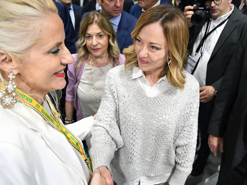 Dopo l’incontro con il giornalista Bruno Vespa, presente nello stesso spazio espositivo con il suo brand, la Premier si è intrattenuta con le sorelle Cotarella, Dominga, Marta ed Enrica, e con i fondatori dell’azienda, Riccardo e Renzo, insieme al direttore della Fondazione Cotarella, Ruggero Parrotto.