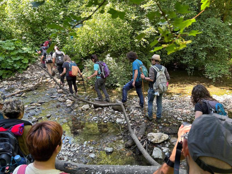 Il nutrito gruppo (nutrito in senso di "numeroso" ma anche di "ben equipaggiato di vivande e bevande": un grazie di cuore alle signore del punto di ristoro Casina di Caiolo per le bruschette offerte ai camminatori) ha percorso l'anello di circa 20 chilometri riempiendosi gli occhi di quanto di più seducente offre il paesaggio e le orecchie, oltre che dei suoni della natura, anche di racconti, esperienze. Una vera e propria immersione nella quintessenza del pittoresco, affrontata con sguardo consapevole e mai proiettato verso sensazionalismi di alcun tipo; lo sguardo che la guida al sentiero, i suoi animatori e tutti i dispositivi messi a punto per condurre il camminatore attraverso i Tre villaggi suggeriscono e alimentano.