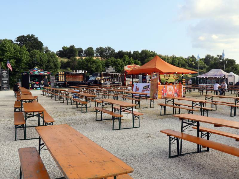 Al centro un palco per concerti e appuntamenti dedicati alle famiglie, che possono gustare le bontà proposte dall'International Street Food, a cura di AIRS (Associazione Italiana Ristoratori di Strada); domani, domenica 8 giugno, l'appuntamento con la SpazioCasa Running, sia gara competitiva che passeggiata ecologica, e la finale Regionale Umbria del concorso Miss Principessa d’Europa.