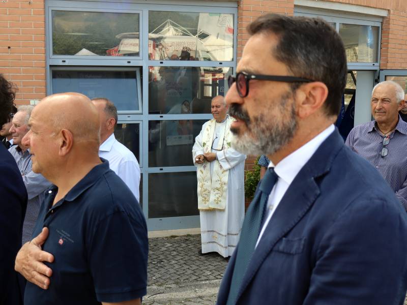 Prima del taglio del nastro la benedizione don Piero, che scherzando ricorda come il "suo" capo sia cresciuto dentro una bottega artigiana, quella di papà San Giuseppe: "L'augurio che posso farvi è che si crei un clima di fiducia e incoraggiamento per dare speranze ai giovani".