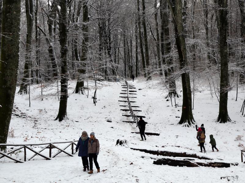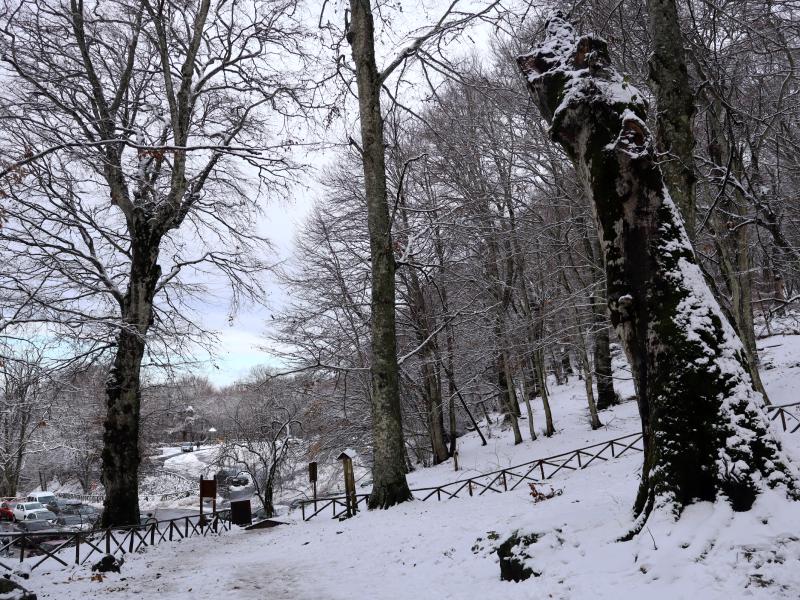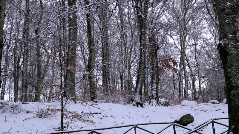 La precedente notte, con le sue basse temperature, ha imbiancato di nuovo il bosco di faggi di Soriano e in tanti hanno riempito il parcheggio per divertirsi a passeggiare e tirarsi qualche pallata. Tante le famiglie, tantissim i bambini che si sono goduti la mattinata.