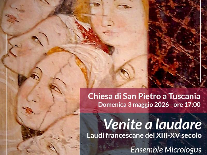 Ad aprire il programma, il 3 maggio nella Chiesa di San Pietro, sarà l'ensemble Micrologus con Venite a laudare. Laudi francescane del XIII-XV secolo. Tra i gruppi italiani più longevi e autorevoli nella riproposizione della musica medievale, Micrologus presenta un progetto dedicato a uno dei momenti più significativi del rinnovamento spirituale e comunitario del Medioevo: la lauda. Canti semplici, monodici, nati nei dialetti volgari e pensati per essere condivisi, in cui la coralità diventa espressione di preghiera, coesione e profonda partecipazione emotiva.