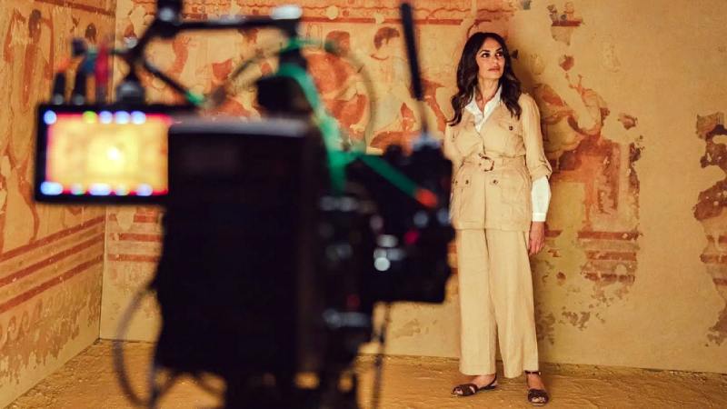 Maria Grazia Cucinotta protagonista dello spot del progetto “Via Etrusca” dedicato a Tarquinia e Cerveteri