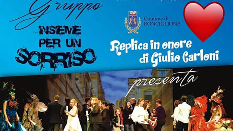 RONCIGLIONE - Lo scorso 26 ottobre era andato in scena al Teatro Comunale Ettore Petrolini registrando il tutto esaurito. Lo spettacolo di beneficenza "Dove batte il mio cuore" - che gode del patrocinio del Comune di Ronciglione - torna a scaldare i cuori dei ronciglionesi dedicando questa replica a Giulio Carloni, amico, attore e sostenitore del gruppo teatrale amatoriale "Insieme per un sorriso", scomparso prematuramente lo scorso ottobre per un tumore al pancreas.