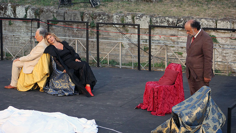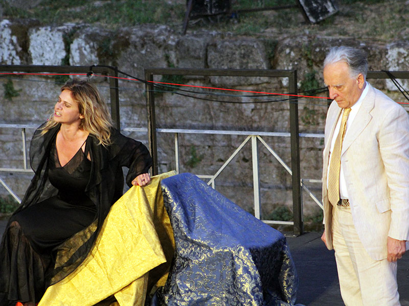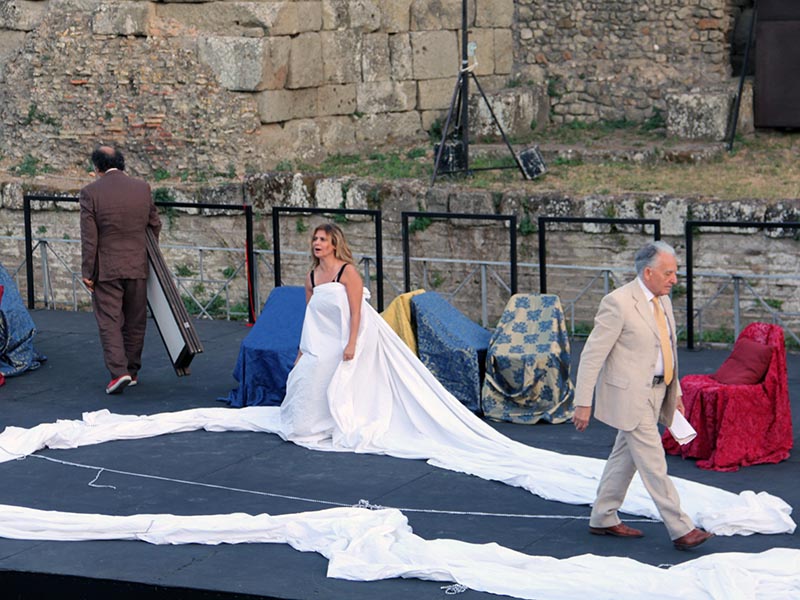 Fare teatro nel post-covid è un'emergenza tutta da raccontare, ma il racconto, in questo caso, si può ancora fare sul palco: la scelta minimale, un testo completamente rivisto, anche per evitare contatti ed abbracci che sarebbero normali in uno spettacolo che descrive l'attrazione distruttiva tra due amanti, e il vento, che giovedì ha deciso di non abbandonare mai il palco dell'antico teatro romano.