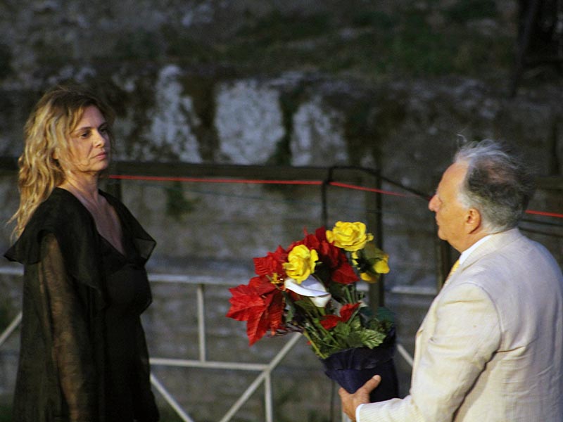 Un'edizione speciale, quindi, addirittura senza microfoni, che ha riportato gli spettatori, chiaramente distanziati, davvero indietro nel tempo, con la cavea a disposizione degli artisti e la massima attenzione da prestare alle loro battute. Al centro Debora Caprioglio, perfetta nel ruolo malizioso, passionale, a tratti birichino, talvolta sofferente e drammatico di Elena, Fausto Costantini, regista e protagonista sul palco nelle vesti di Andrea, uomo perfetto nella versione piegata dal tempo che lo fa rinunciare all'amore giovanile, e Tonino Tosto, il Gabriele D'Annunzio che funge da narratore e filo conduttore della riedizione de "Il piacere".