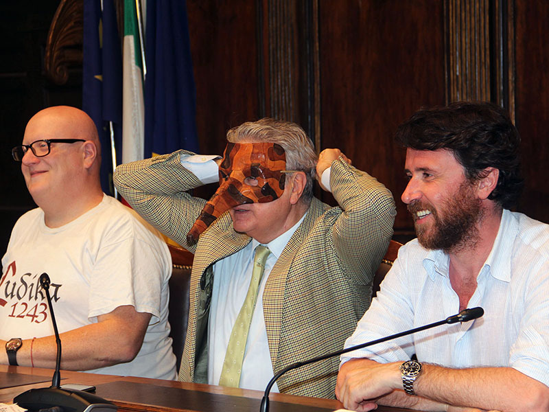 Nella sala consigliare del Comune di Viterbo erano presenti gli organizzatori Serenella Bovi, Omar Lombardi e Chiara Bartolucci, accolti dai padroni di casa, il sindaco Arena e l'assessore De Carolis.
