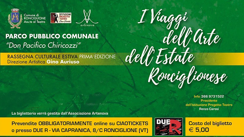 "Ringrazio l'Ass. Artenova di Roma e il direttore artistico Gino Auriuso per la collaborazione a questa prima edizione della rassegna, che ci auguriamo potrà diventare un appuntamento estivo ricorrente per i ronciglionesi - ha dichiarato l'assessore Manuela Giorgetti. Un ringraziamento particolare anche a Simonetta Corsi dell'Istituzione Teatro, per il prezioso ed impegnativo lavoro di coordinamento delle pratiche per la sicurezza, non facili da espletare in questo particolare momento. Finalmente torniamo ad offrire ai cittadini la possibilità di godere di spettacoli dal vivo, ad un costo contenuto, proponendo un cartellone di qualità. Quella dello spettacolo è una delle categorie che più hanno sofferto della pandemia e siamo felici di sostenerla in questa nuova fase di rinascita".