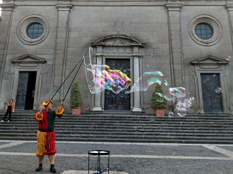 La kermesse si è aperta con una serie di spettacoli ed esibizioni degli artisti di strada, anzi di piazza, visto che le performance si svolgono nell'affascinante angolo tra il duomo e il Palazzo papale.