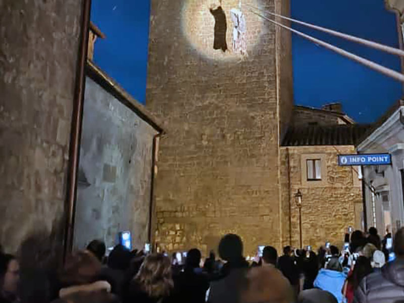 Nel pomeriggio di ieri infatti, a bordo della sua scopa magica, la befana è comparsa in cima alla famosa Torre dell’Orologio nel borgo di Bassano. E da lì, sospesa in aria, si è calata verso i bambini bassanesi che la stavano aspettando accompagnati dai loro genitori.