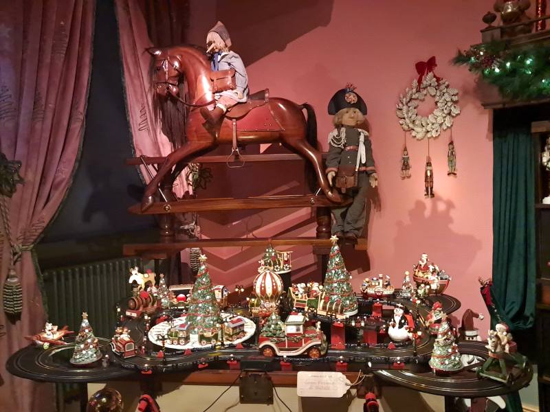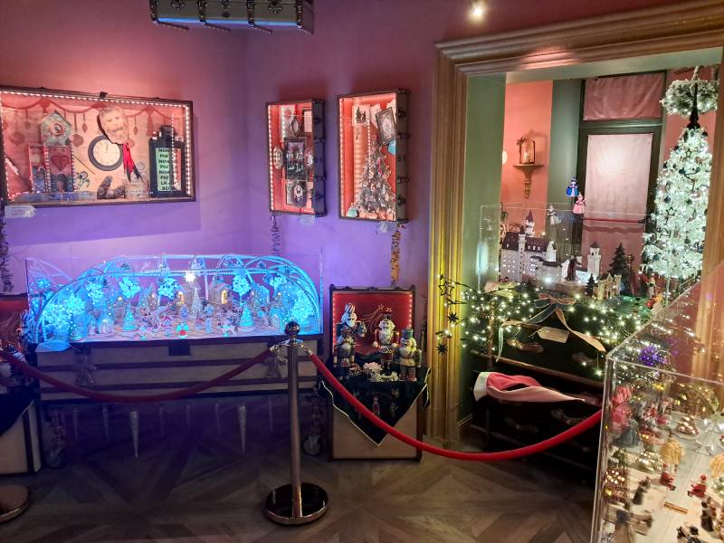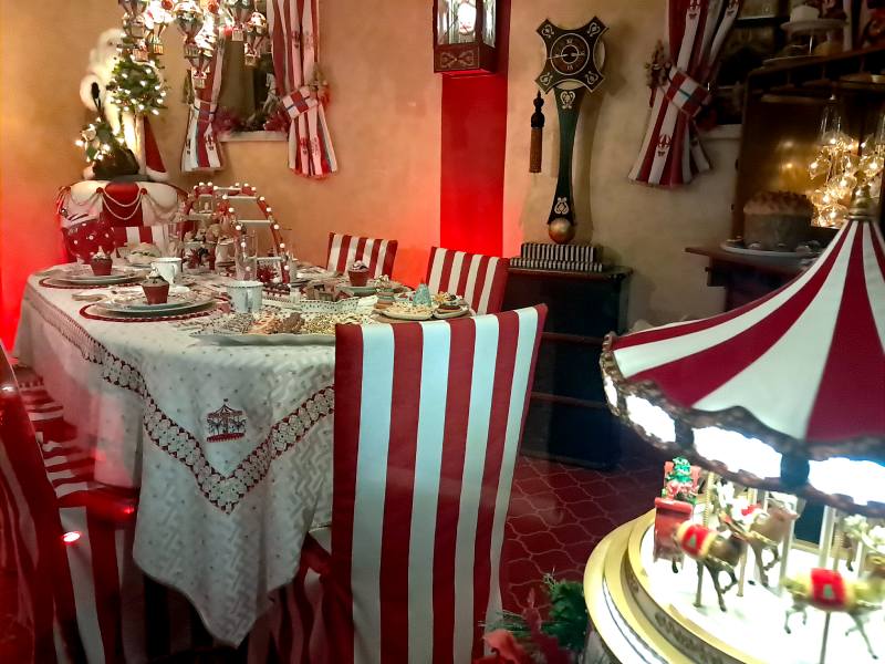 Oltre al museo, che consigliamo di visitare per ammirare davvero pezzo per pezzo, angolo per angolo, immergendosi in un mondo festoso, tre "vetrine" sono a disposizione degli sguardi dei passanti: la prima si trova davanti all'ingresso attuale del museo, ed è la sala da pranzo di Babbo Natale, anch'essa curata in ogni dettaglio, tovaglia e tovaglioli, piatti, bicchieri, alzate, posate, applique da muro, coprisedia, lampadari, niente è lasciato al caso e mantiene il proprio stile ad ogni rinnovo, perché sono tanti i servizi da ammmirare.