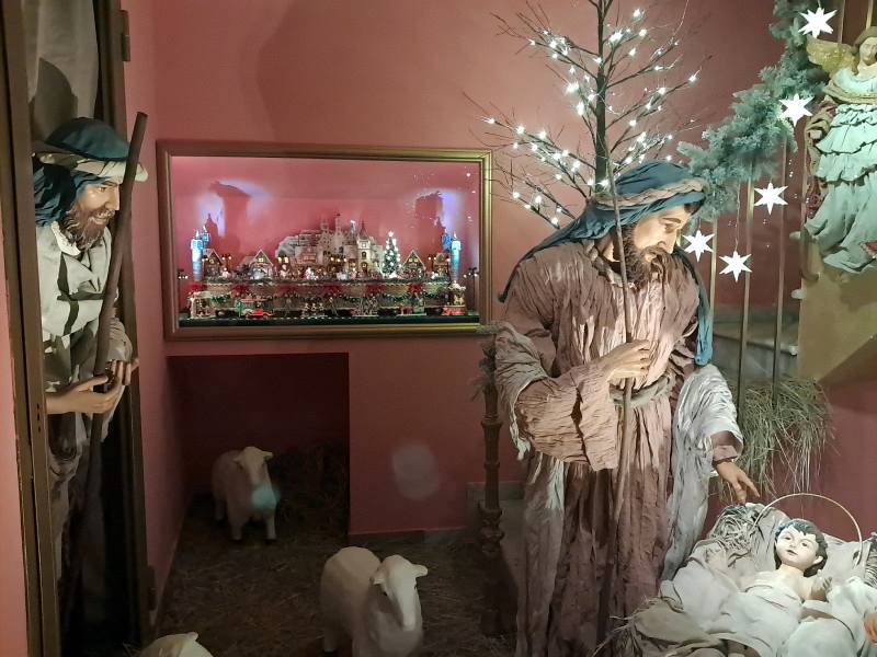 Pochi passi più avanti l'inizio del progetto dedicato al presepe, a grandezza naturale, che nel prossimo futuro sarà ampliato, anche se è già meraviglioso vedere la Sacra Famiglia con davanti un pastore e il suo piccolo gregge.