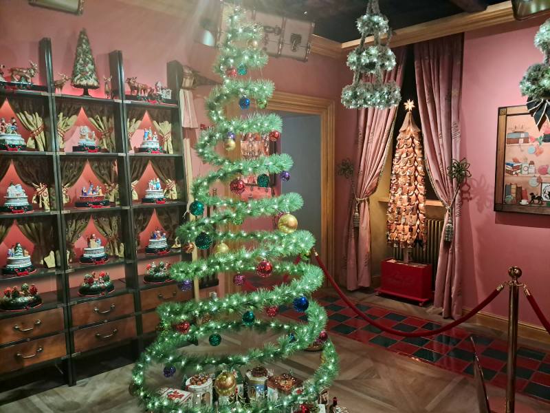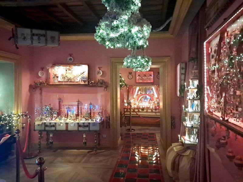 La prima sala, quella dei carillon, non poteva che ospitare l'albero che non c'è, che fluttua magicamente, seguita da quella delle favole, con i personaggi più amati dai bambini protagonisti di villaggi incantati; degna di nota la piramide di Natale, che ospita un presepe girevole meraviglioso.