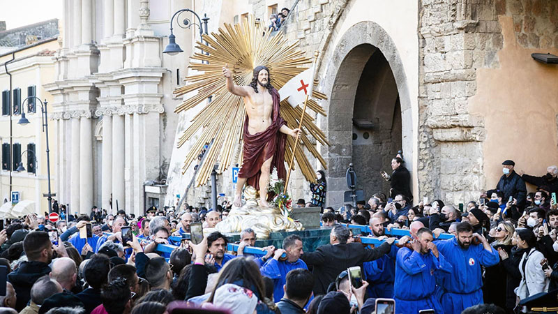 TARQUINIA - È una tradizione secolare quella della processione dedicata al Cristo Risorto che vede, la domenica di Pasqua, riversarsi nelle strade di Tarquinia un brulichio di fedeli, richiamati anche dai centri più lontani, che inondano numerosissimi le vie del centro storico cittadino.