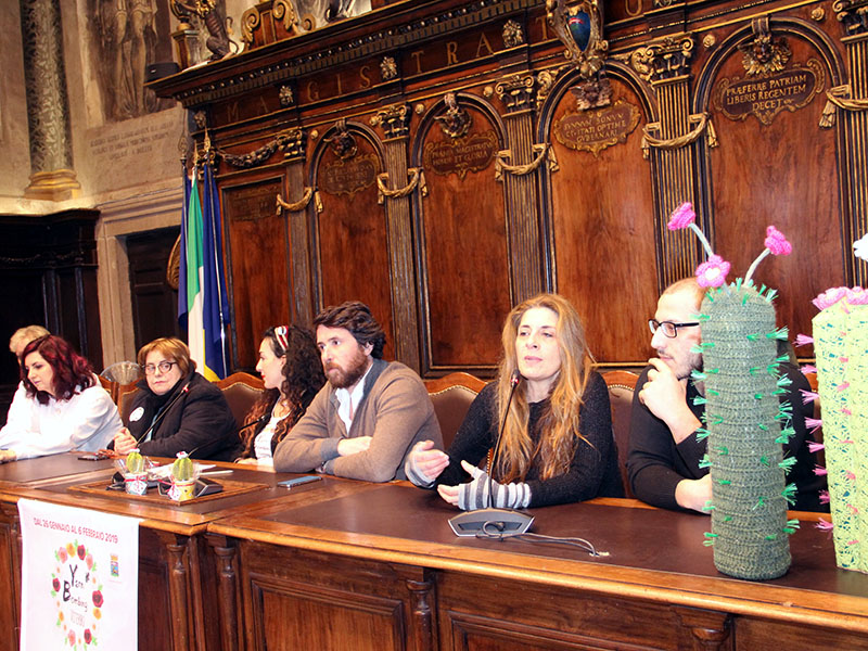 La presentazione questa mattina, nella Sala consiliare, con Roberta Sperduti, per Yarn Bombing, l'assessore alla cultura De Carolis e gli artisti Laura Antonelli e Vincenzo Icastico che proprorranno la performance inaugurale.