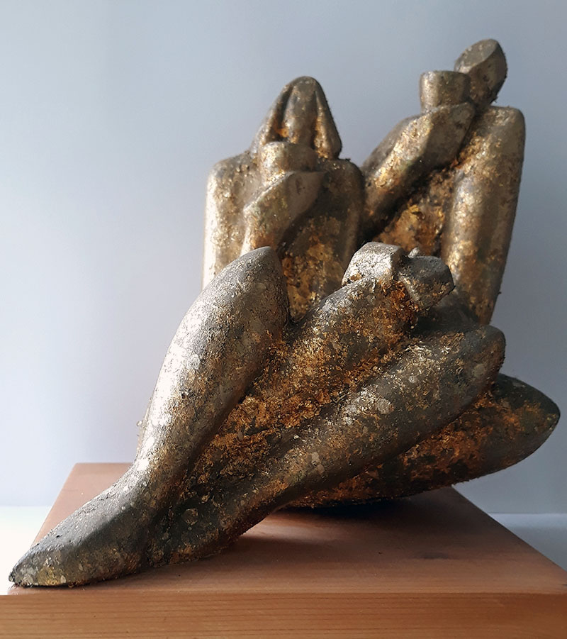 Quella presentata non è che una piccola parte dei soggetti figurativi realizzati, ma offre un’idea della creatività, oltre che delle conoscenze tecniche, di Gradassai nello scolpire materiali tanto diversi - peperino, marmo bianco, pietra arenaria, alabastro, basalto, legno - come nel modellare, ovviamente a mano, il gesso e il cemento. In cemento patinato è, ad esempio, la composizione, scelta anche per la locandina della mostra, “Brindisi degli sposi”, suggestiva reinterpretazione del Sarcofago degli Sposi, tra i gioielli del Museo Etrusco di Villa Giulia. A documentare la sperimentazione nel campo della modellazione, sarà esposta una deliziosa scultura in terracotta raffigurante due fratelli in tenera età uniti da un sentimento di reciproco affetto. Una chicca, i due oli su tavola nati dall’osservazione delle rocce sedimentarie della Sardegna, che hanno successivamente ispirato opere scultoree.