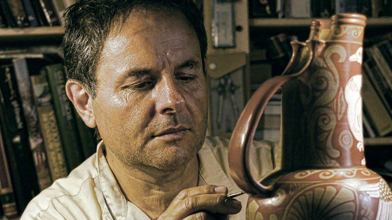 Mentre dipingerà i manufatti con il caratteristico pennello cosiddetto “baffo di lepre”, Dobboloni illustrerà le tecniche utilizzate e racconterà la storia del popolo falisco, che lo affascinato sin da ragazzo. “L’area dell’antica Falerii è stata il mio smartphone”, ha detto, in un recente incontro con gli studenti.
