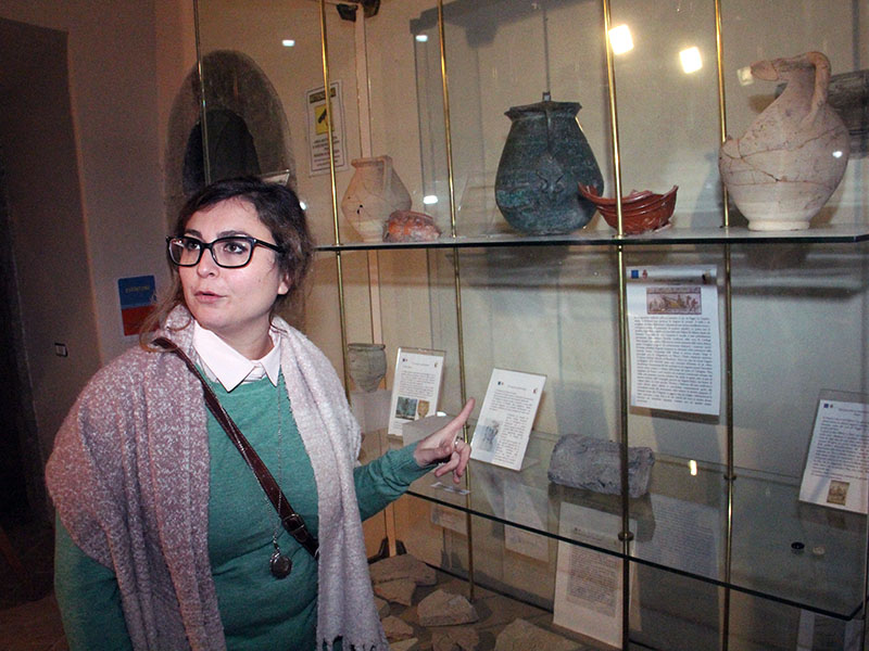 Tra i reperti in mostra la bellissima anfora con scrittura corsiva “Oliva Ni[gra] L(ucios) Man(ius) (Severus?)” e un capitello ionico letteralmente fatto a pezzi ed utilizzato come blocco al riempimento del canale, oggi ricostruito ed esposto nella sala dove sono anche presenti “tegulae mammatae” e resti laterizi, alcuni molto rari, come del marmo colorato e parti di una "fenestra clathrata".