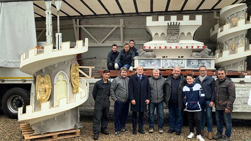 Torri come il Giglio di Nola che svetterà dal piano inferiore fino alla cupola, “Spirale di Fede” che riproduce una storica Macchina di Santa Rosa, la struttura "svestita" della gigantesca Varia di Palmi sulla cui cima il giorno della festa "vola" una bambina, i Candelieri di Sassari con i loro nastri colorati e, infine, i Ceri di Gubbio, "Ceri mezzani" in arrivo dalla gloriosa “Corsa” eugubina, ricongiunta alle altre quattro feste in attesa dell'estensione della candidatura Unesco della Rete, in corso di definizione.