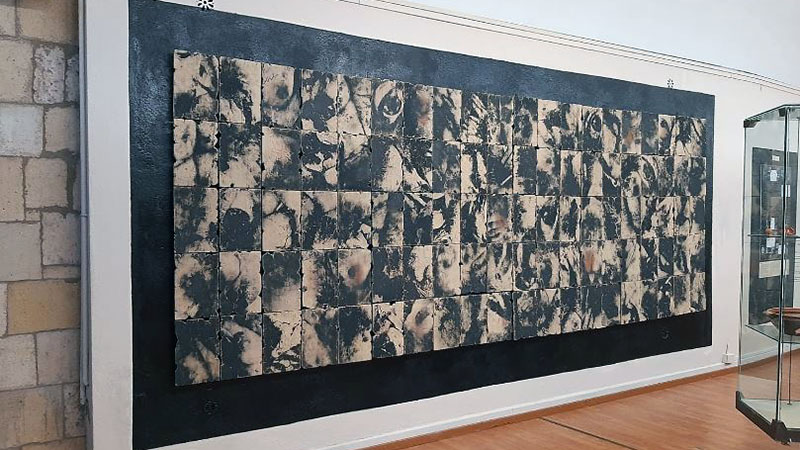 L’opera, originalmente pensata come site specific per l’abside dell’Auditorium San Pancrazio, dove si sviluppava in verticale, è formata da 110 elementi in grès con stampa monocromatica. Nella nuova location, grazie al confronto diretto con l’artista, è stato concepito un nuovo formato più adatto alla musealizzazione, ora infatti l’opera si sviluppa in orizzontale a formare un pannello di 4,80 m per 1,80 m di altezza.