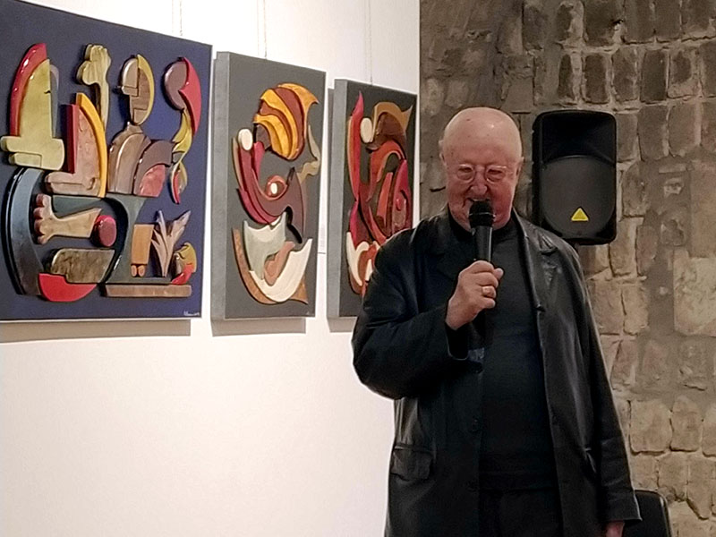 Il viaggio tra le opere di Mascagna è stato guidato dal professor Aurelio Rizzacasa, che fu suo docente di estetica e lo conosce da tempo. Un momento davvero incantato seguito dai presenti con tantissima attenzione: "Presentare una mostra, come un libro, è sempre difficile perché si rischia di togliere l'originalità. Quindi espliciterò alcuni vissuti da fruitore della mostra., così come l'ho letta - ha sottolineato Rizzacasa -. Mascagna stabilisce una strategia rivoluzionaria, secondo una continuità discreta, non ci sono rotture e questo ci permette di capire le cose.