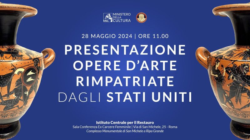 ROMA - Domani, martedì 28 maggio 2024 (ore 11) a Roma, all’Istituto Centrale per il Restauro (Sala conferenza Ex Carcere Femminile – via di San Michele, 25), si svolgerà la presentazione delle opere d’arte rimpatriate dagli Stati Uniti d’America dal Comando Carabinieri Tutela del Patrimonio Culturale.