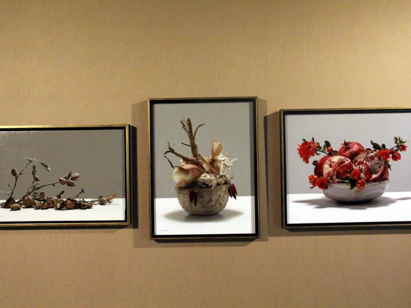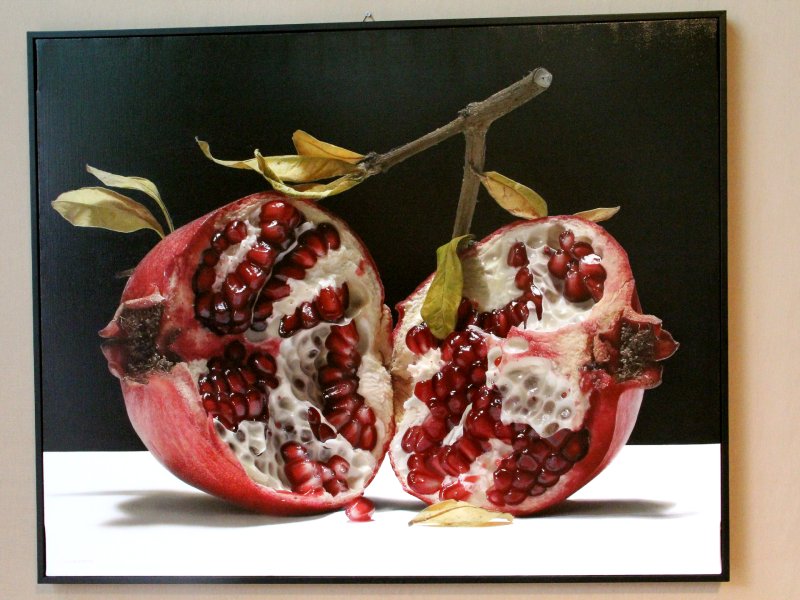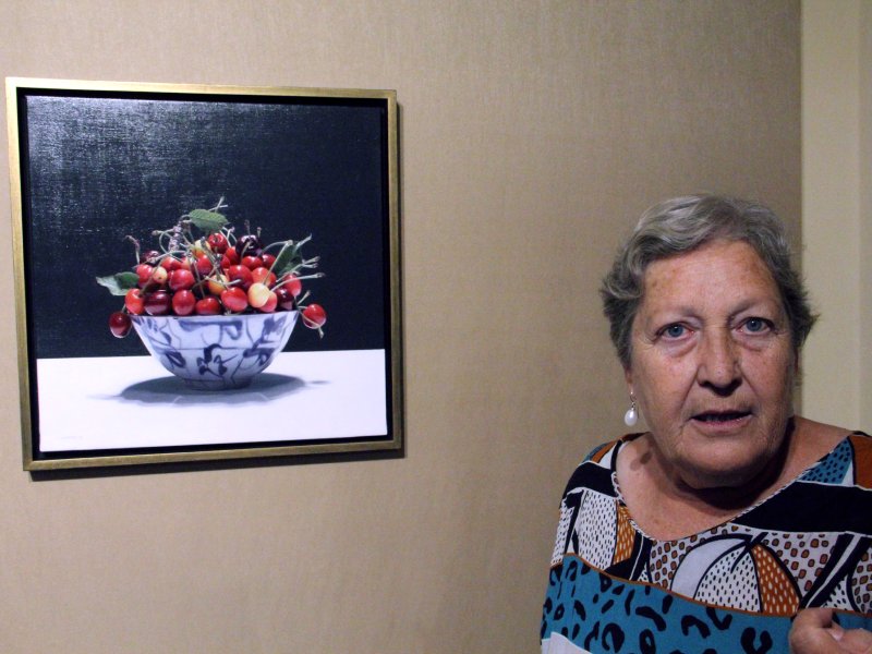 Girando per la mostra la signora Miranda lascia da parte la timidezza e racconta da cosa nascono le opere: "Sono una fotografa e ho girato il mondo. Ogni volta che trovavo frutta ed oggetti particolari, come i vasi che vedete riprodotti in molti di questi quadri, li prendevo. Ricordo che una volta ho persino fermato un autobus dopo aver visto alcuni manufatti di un artigiano per strada. Dovevo scendere e comprarli.