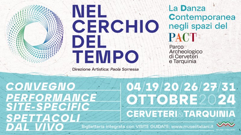 TARQUINIA - Convegni, performance site-specific e spettacoli dal vivo, dal 4 al 31 ottobre negli spazi del PACT_Parco Archeologico di Cerveteri e di Tarquinia, con Nel Cerchio Del Tempo, progetto multidisciplinare volto a favorire attraverso la danza contemporanea la valorizzazione del patrimonio culturale italiano, con un programma di attività speciali ed eventi performativi.