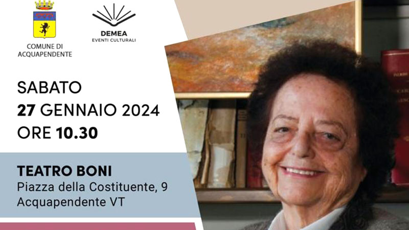 ACQUAPENDENTE - In occasione del Giorno della Memoria, la ricorrenza internazionale istituita per commemorare le vittime della Shoah, Acquapendente ospita l'eccezionale testimonianza di Lia Levi, scrittrice e giornalista, superstite dell'Olocausto italiano.