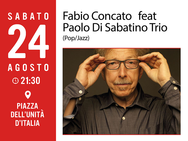 Sabato 24 Agosto, sempre alle 21.30, l’attesissima chiusura della 14° edizione è affidata al grandissimo Fabio Concato feat Paolo Di Sabatino Trio. Fabio Concato è una delle più belle certezze della musica d’autore italiana, artista poetico e intimista, mai sopra le righe, pacato nei modi e nelle interpretazioni, possiede una vocalità che negli ultimi album ha sfumature da interprete raffinato. L’autore di brani ormai popolarissimi come Domenica bestiale, Guido piano, Fiore di Maggio, Rosalina, Canzone di Laura, M’innamoro davvero, Ciao Ninìn e tanti altri, suonerà per la prima volta a Viterbo in un concerto in chiave jazz di rara bellezza. Ad accompagnarlo il fantastico trio jazz del pianista Paolo Di Sabatino, noto ed acclamato musicista che vanta collaborazioni nazionali ed internazionali. Con il pianista teramano saliranno sul palco per questo ultimo importante appuntamento del JazzUp Festival, Marco Siniscalco al basso elettrico e Glauco Di Sabatino alla batteria.