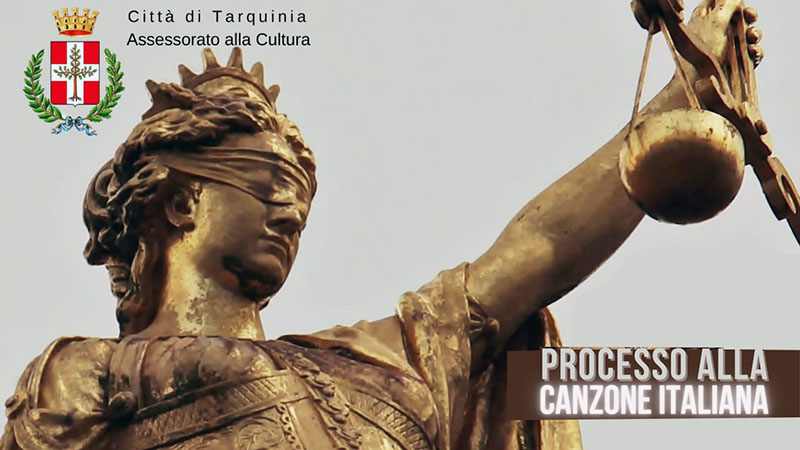 TARQUINIA - Cento anni di musica italiana ripercorsi in chiave ironica attraverso un processo in cui un giudice, impersonato da Massimo Pierozzi, enumera una serie di accuse strampalate contro la Canzone Italiana, Elena Biagiola, la quale si difende di volta in volta chiamando in causa un coro, l'EtrusChorus "Maria Laura Santi" di Tarquinia.
