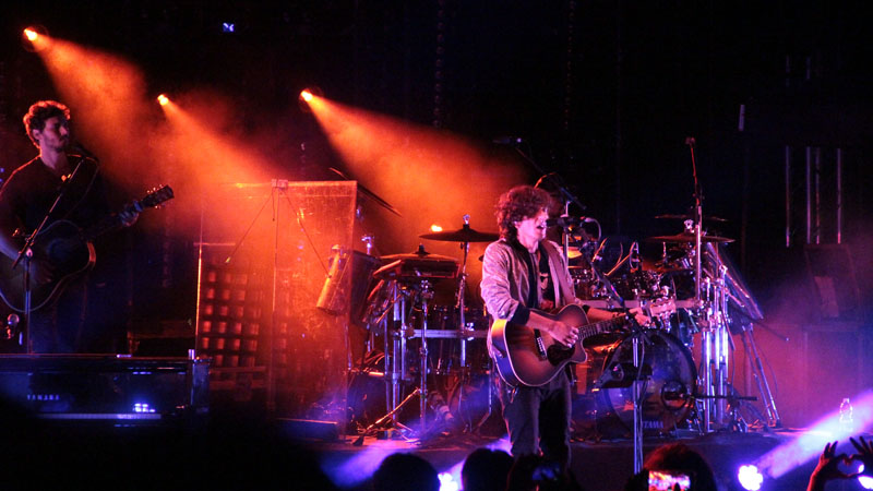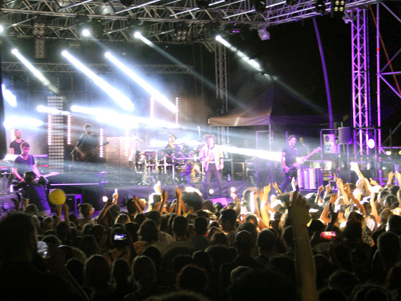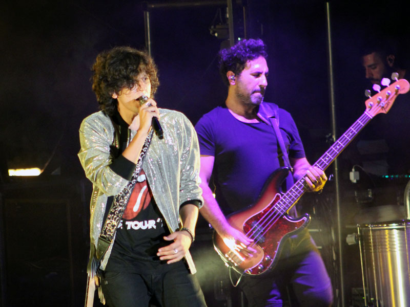 Ha portato sul palco i suoi riccioli mori e un look tutto personale, t-shirt commemorativa di un concerto dei Rolling Stones del 1978 con linguaccia d'ordinanza, accompagnato da giubbottino glitterato oro, ma soprattutto la sua voce e la sua musica. Sotto di lui migliaia di fan, in prima fila tantissimi adolescenti venuti da mezzo centro Italia, e poi via via il pubblico di tutta la Tuscia che non si perde un concerto, accompagnandolo con gli applausi fino alla salita verso San Rocco.