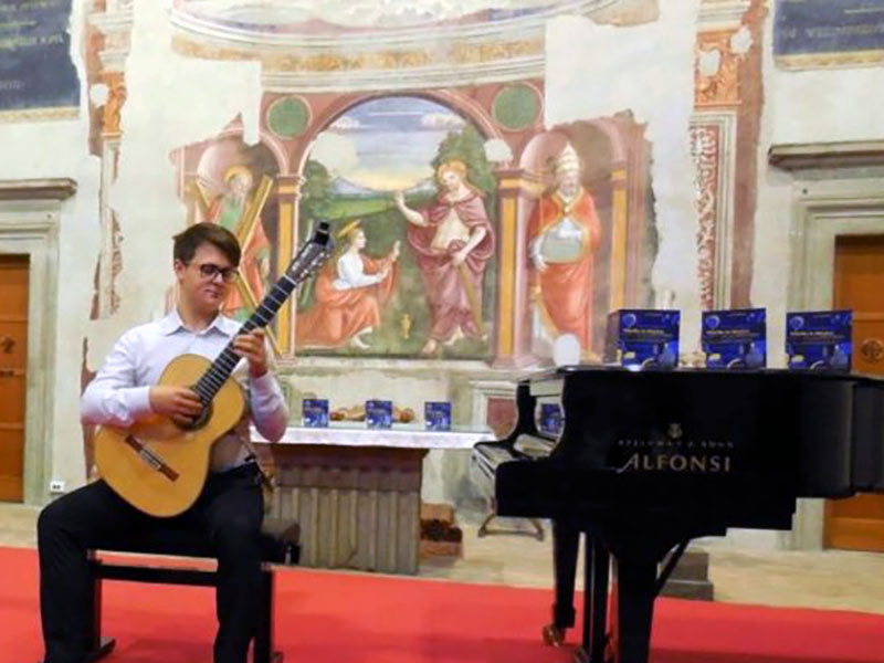 A soli ventidue anni Leonardo Di Nino, giovane chitarrista, eccellente interprete di musica classica, ha dato ulteriore conferma nell'appuntamento dedicato ai Giovani talenti, rassegna promossa in collaborazione con l’Accademia Praeneste di Roma. Di Nino ha eseguito nella Chiesa del Gesù a Viterbo un godibile concerto facendo ascoltare brani di grandi compositori, riscuotendo prolungati applausi. Ha iniziato con Johann Sebastian Bach (1685-1750) e con lui ha terminato in un richiestissimo bis.