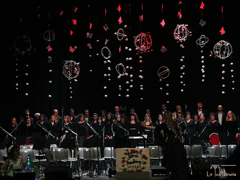 Teatro dell'Unione pieno per oltre 3 ore di musica con protagonisti a non finire, presentati in modo fiabesco e disincantato dall'attrice Laura Antonini, la ballerina Chiara Orazi e la performer Roberta Sperduri, immerse nella magica della scenografia realizzata dalla Yarn Bombing Viterbo. Sul palco, diretti dal maestro Fabrizio Bastianini, l'orchestra sinfonica EtruriaEnsemble e l'ensemble vocale Il Contrappunto, i giovani dell'orchestra sinfonica Ars Nova, diretta da Luca Tomarchio e Giuseppe Maria Ceccarini, e il Contrappunto Kids, i solisti Emanuele Pellegrini, Alessandro Fiocchetti, Mariangela Rossetti, Serenella Fanelli, Luisa Stella, Federico Benetti, Fabrizio Viti al pianoforte, per gran parte eccellenti talenti locali.
