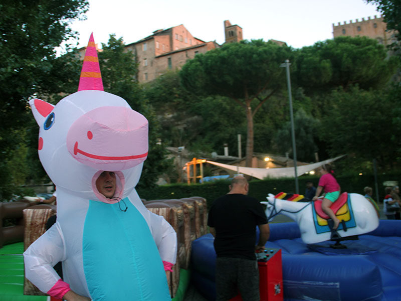 Non mancano le icone del momento e quelle di sempre, dalle Barbie Girl che invitano allo scatto iconico nella scatola della storica bambola, tornata prepotentemente cool grazie al film, al toro e unicorno meccanici, con tanto di unicorno gonfiabile per l'immancabile scatto. La sera poi arriverà un altro personaggio amato ad ogni età, Mario Bros a far coppia con Pikaciu.