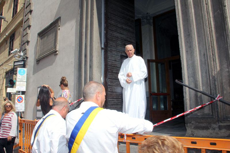 Emozione per gil abitanti di Fontanarosa, ospitatati dal Sodalizio per esorcizzare la loro Macchina, sempre alta 30 metri ma in paglia e con la Madonna in cima, che il 14 agosto si è fermata, appoggiandosi ad un palazzo. "Rialzatevi e riportatela più in alto di prima" gli ha detto il presidente Mecarini.