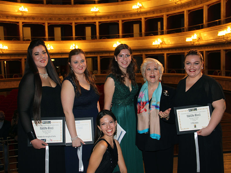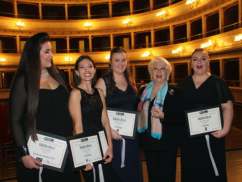 A vincere, convincendo la qualificatissima giuria, presieduta da Madame Serra, è stata la ventiduenne palermitana Giulia Mazzola, seconda l'istrionica Isidora Spassitch, proveniente dalla Bulgaria, e terza Carmen Buendía Rueda, che con il consueto calore spagnolo ha proposto una Violetta di Verdi nel momento di massima emozione, quando decide tra la libertà e l'amore per il suo Alfredo. Tra le più giovani è stata scelta Arianna Giuffrida, giunta fino alle semifinali del concorso, a cui è stata assegnata la borsa di studio Germoglio d'arte, che le permetterà di vivere una masterclass nel Festival Internazionale delle Arti di Copertino. Per la prima volta è stato coinvolto il pubblico, che ha scelto Isidora Spassitch, un bis dopo il riconoscimento della giuria, un'artista completa che ha dimostrato una grandissima capacità espressiva e recitativa, proponendo un contemporaneo brano dall'operetta Candide di Bernstein. Sul palco sono saliti i rappresentanti dei partner del Premio Ricci: Comune di Viterbo, Fondazione Carivit, Lions Club Viterbo (per il podio), Ali di Beatrice (Germoglio d'Arte), Avam e Banca di Viterbo (insieme nel premio del pubblico). Assegnati anche due ruoli d'opera, seconda sezione del concorso: nel cast della produzione della Cavalleria Rusticana di Mascagni, in scena nell'autunno del 2019, saranno Mariagrazia De Luca, a cui è stata assegnata la parte di Lola, e Courtney Mills, Santuzza, artista straordinaria, definita dalla giuria “cantante con la voce perfetta per la parte”, che ha dato prova della sua bravura proponendo al pubblico una struggente aria tratta dall'opera.