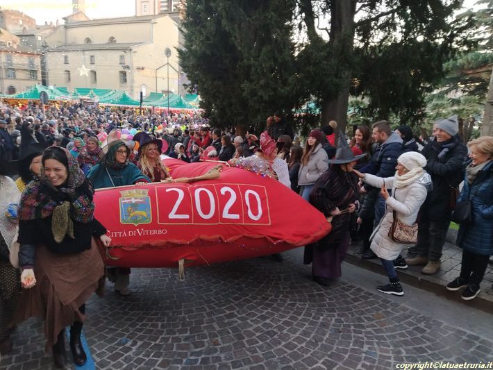 Spettacolo ormai collaudato, dalla partenza dalla calza, gonfiata con il supporto dei vigili del fuoco, trasportata dalle auto del 500 Tuscia club fino al Sacrario. Poi il tratto a piedi, in marcia dietro la banda folcloristica Apolline Bianchi di Bassano in Teverina e le majorettes bianco-blu Starlight di Grotte Santo Stefano. A San Faustino si torna in marcia sulle Cinquecento, verso il Pilastro, per la festa finale nel luogo simbolo dove tutto è iniziato, il Centro sociale.