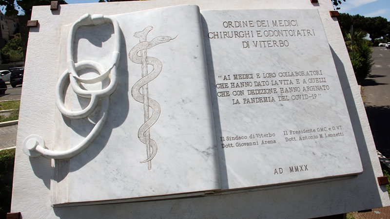 Vicino al sindaco anche Giovanni Funari, autore della scultura in marmo, che riporta un caduceo insieme ad un fonendoscopio, mentre nella seconda pagina è scolpita la dedica “Ai medici e loro collaboratori che hanno dato la vita e a quelli che con dedizione hanno arginato la pandemia del Covid-19”. Chiusura con le parole del presidente, il dottor Antonio M. Lanzetti “Questo monumento è dedicato a chi ha dato la cosa più bella: la vita”.