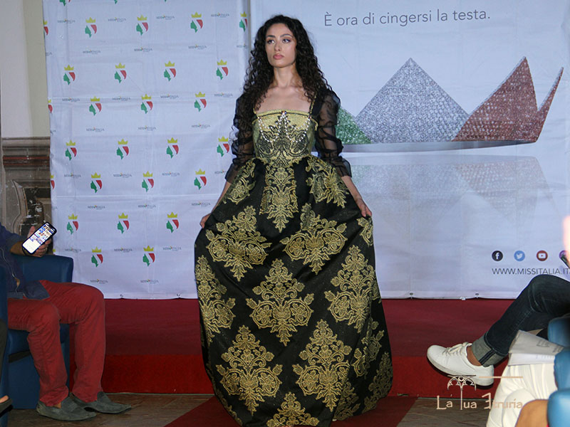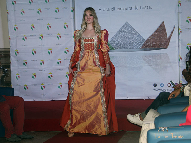 Manca poco alla proclamazione, le ragazze sfilano con gli abiti sportivi Givova e soprattutto incantano con gli abiti rinascimentali di Ilaria Sforza Petrocochino, di cui a seguire pubblichiamo una selezione.