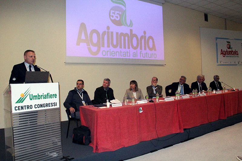 Il ministro ha poi visitato l'intera fiera, dalle macchine agricole ai produttori di mangimi, dalle associazioni di categoria agli stand istituzionali della Regione Umbria o dell'Agenzia delle Dogane, per poi affrontare la platea del centro congressi, dove si stava parlando di sostenibilità e futuro.