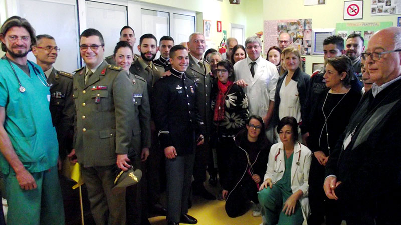 Una rappresentanza di Marescialli del XIX corso “Saldezza”, inoltre, si è recata in visita dai piccoli degenti del Reparto “Pediatria”, consegnando a ciascuno un fascicolo del “Lupetto Vittorio”, la mascotte dell’Esercito nata dalla volontà di comunicare, anche ai più piccoli, i valori fondamentali della convivenza democratica e del vivere comune.