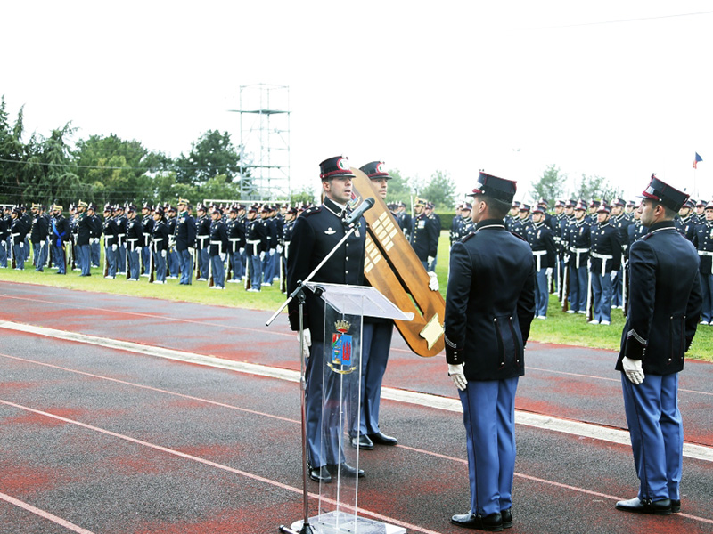 Momento speciale della cerimonia, il “passaggio della stecca”: il Capo Corso degli Allievi “anziani” consegna la “ tecca” a quello degli Allievi “giovani”.