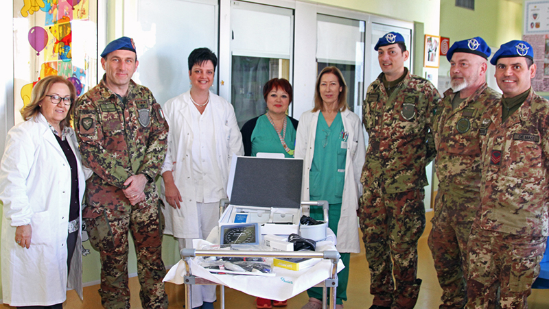 La dottoressa Navas, nell’accogliere le apparecchiature donate dalla Specialità, ha voluto ringraziare i baschi azzurri per il contributo concreto all’équipe medica e soprattutto ai piccoli pazienti.